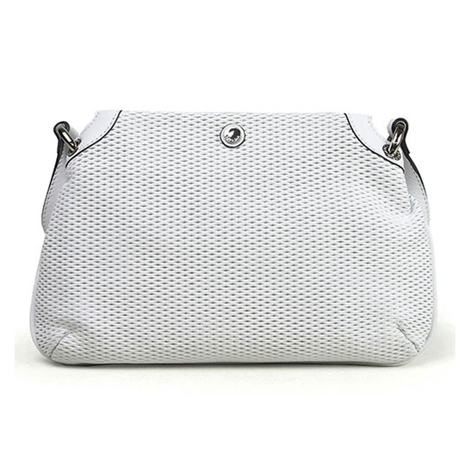 角が丸いので女性らしく上品な印象のデザインです。また、牛革のカッティングは他にはない網目模様で個性的です。他の人とかぶらないデザインで目を引く可愛いポシェットです。