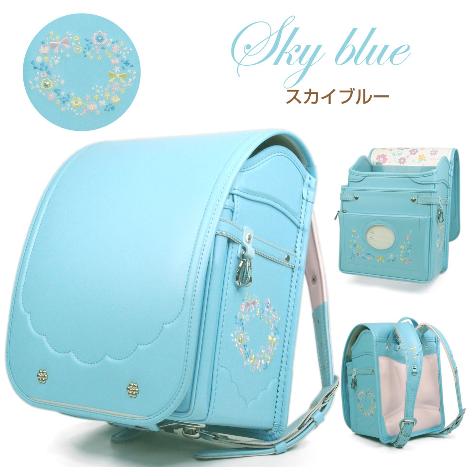 お洒落なデザインで、前から見たときにも花やリボンの刺繍が目に入るように配置されています。