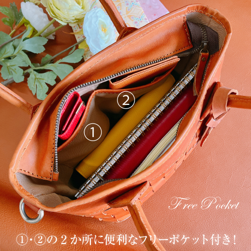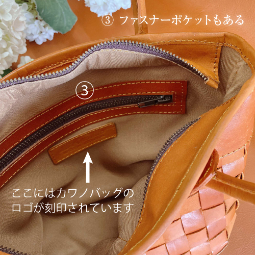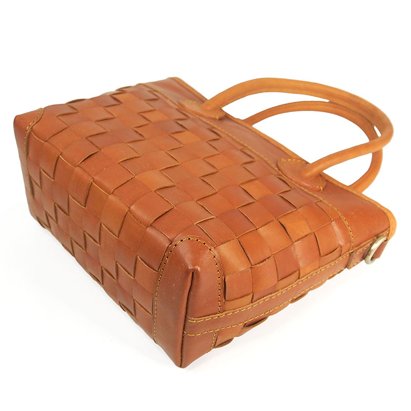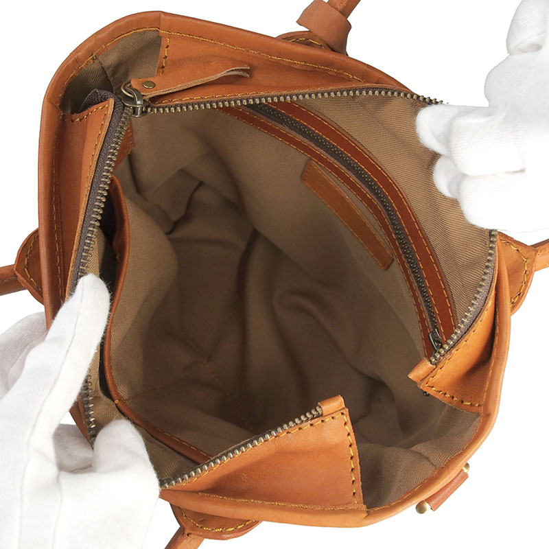 メッシュ 2WAY ハンドバッグ ショルダーバッグ 育てる革 牛革 ヌメ革 タグ付き A6サイズ ハンドメイド ベジタブルタンニンなめし No.03125 camel キャメル