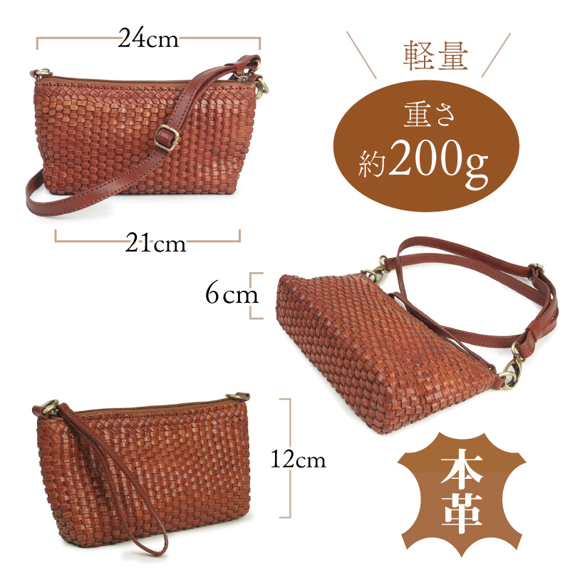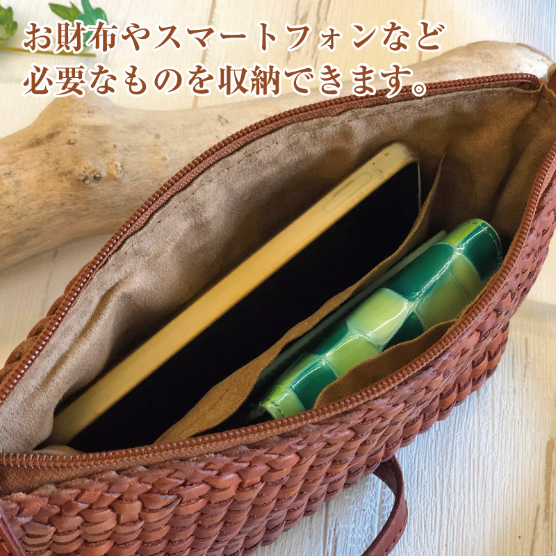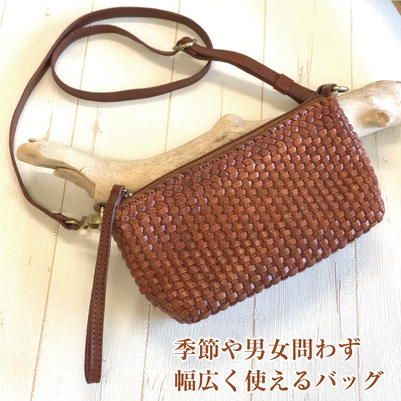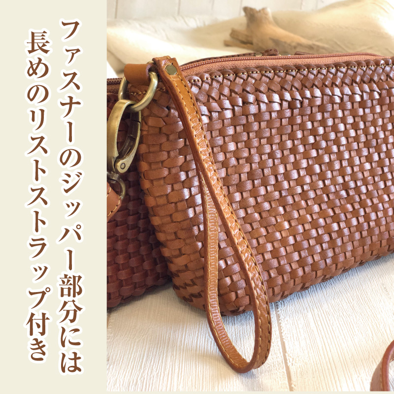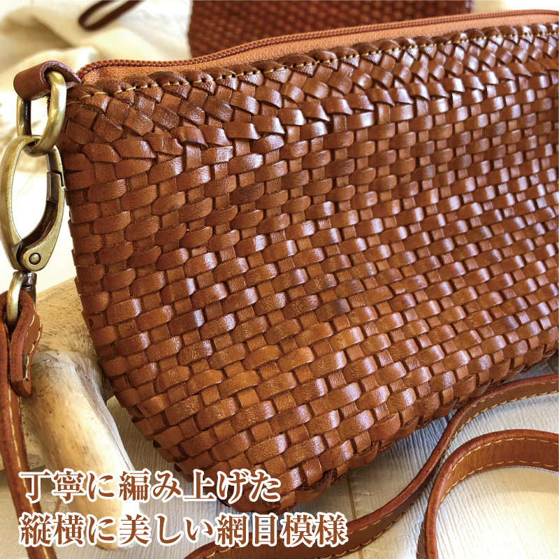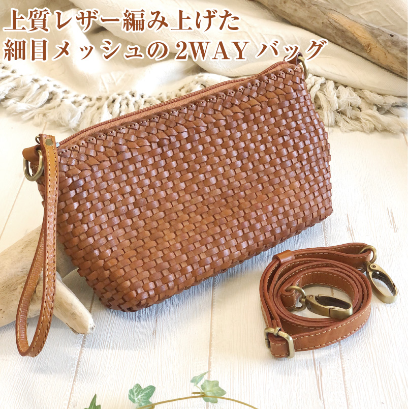 上質でしなやかかつ丈夫な本革を、職人の技術が光る美しく細かいメッシュ状に丁寧に編み込みました。持つ人を引き立て存在感のあるショルダ-バッグにもなる2wayバッグです。