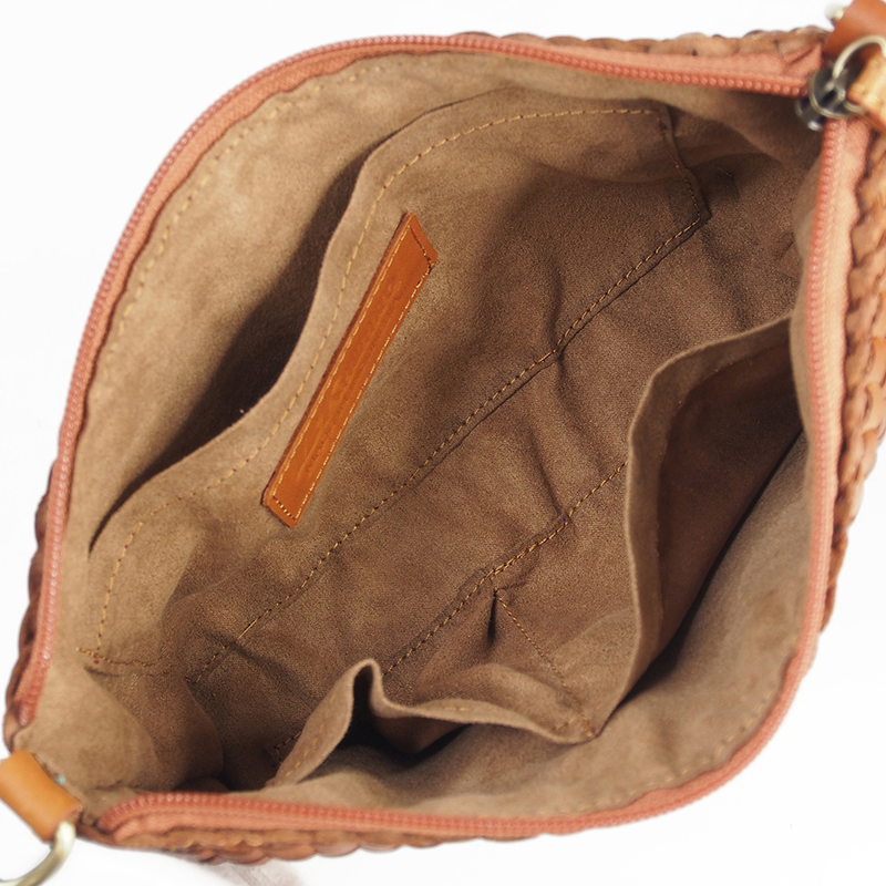 細部まで丁寧に編み上げた縦横に美しい網目模様は、均一で隙間もなく熟練の職人の技術が光る高級感溢れる逸品です。デザインのポイントとして上部のファスナーまわりの「縁取り」部分の編み目がアクセントになっており、丈夫さも増しかつ洗練された上品な印象を与えます。