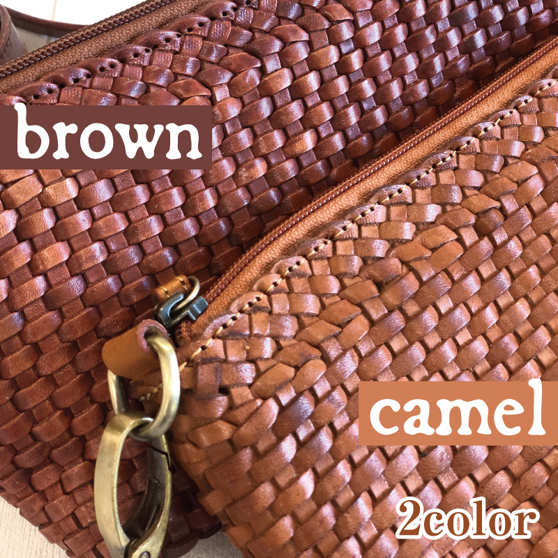 本革 牛革 メッシュ ポーチ クラッチバッグ 網目 細目 2WAY ショルダーバッグ セカンドバッグ 男女兼用 サコッシュ カワノバッグ No.03128 キャメル ブラウン