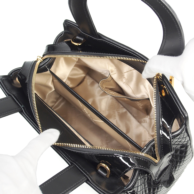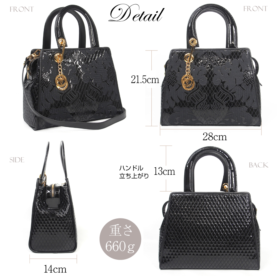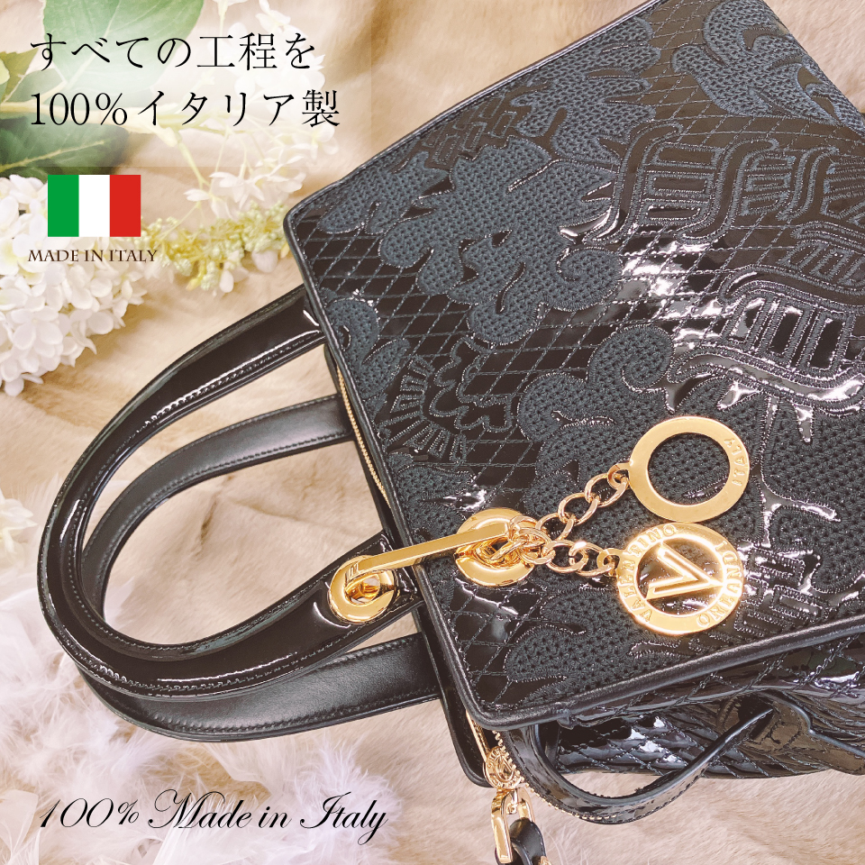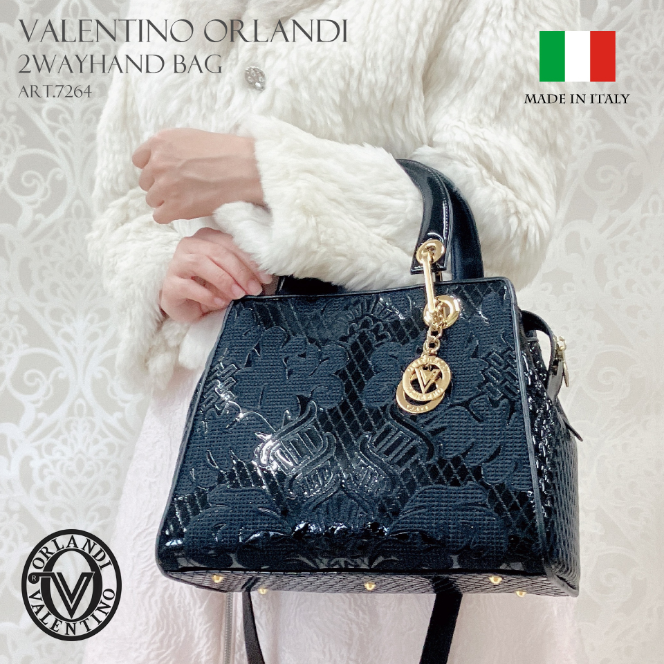 2025 秋冬 イタリア製 RODI刺繍 本革 パテントカーフレザー 2WAY ショルダーバッグ レディース Valentino Orlandi ヴァレンティノ・オルランディ art.7264