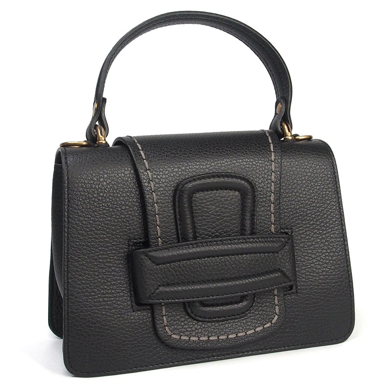 LINDAでは、フラップ部分が単なる“蓋”ではなく、バッグ本体と一体化するような立体裁断になっています。フラップの厚みと本体の張り感がバランスよく保たれているため、形崩れしにくい構造です。また、ヴィソナの象徴とも言えるセレリアステッチのラインでフラップの外周を囲んで曲線を美しく強調しているのがイタリア職人のハンドクラフトの温かみを感じさせます。