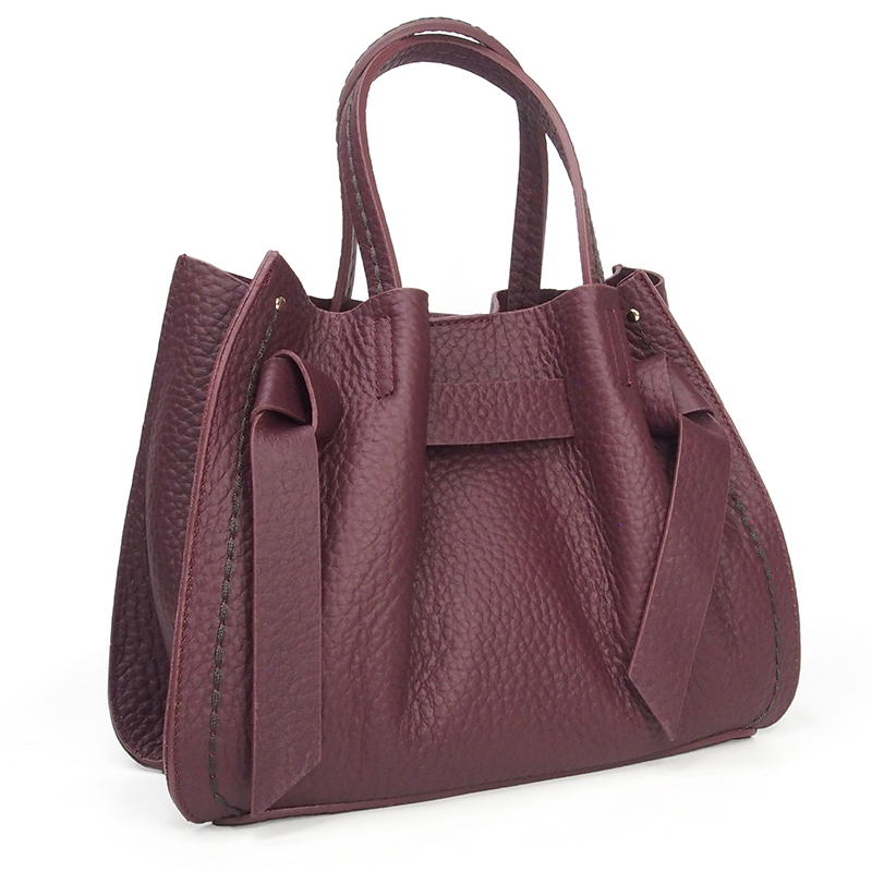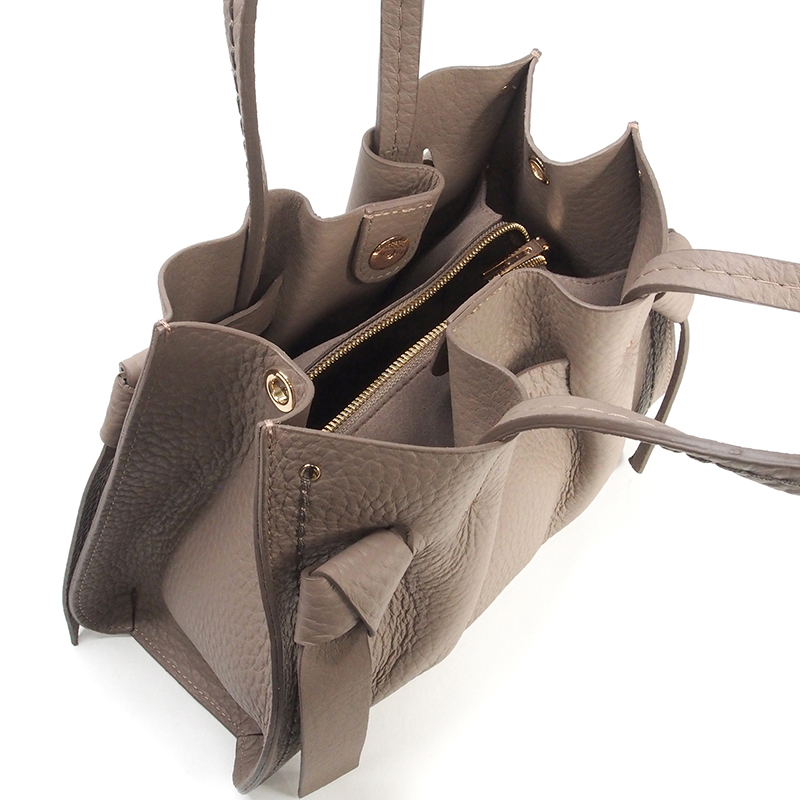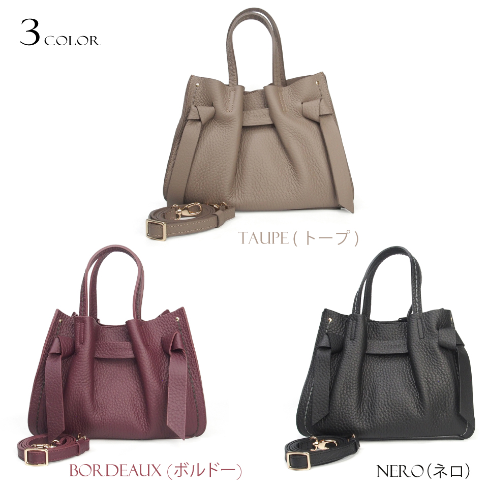 イタリア製 ヴィットリア Vittoria 牛革 ダブルカーフスキンレザー ハンドバッグ ショルダー 2way リボン ドレープ PLINIO VISONA プリニオ ヴィソナ No.24730