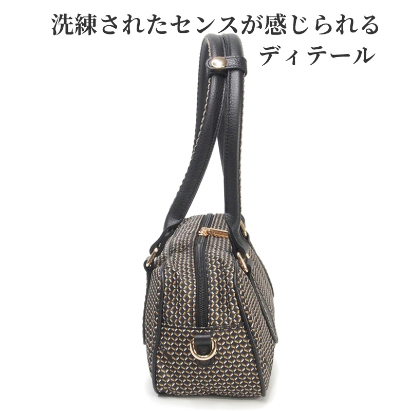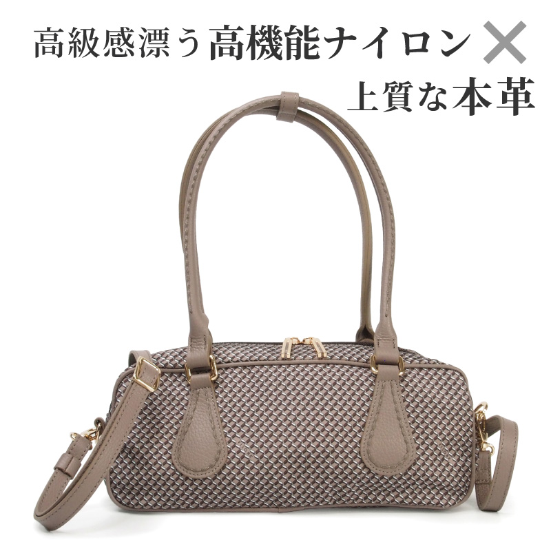 【上質なナイロンと本革レザーを組み合わせた、実用性と洗練された上品さを兼ね備えた軽量ミニボストンバッグ】