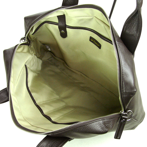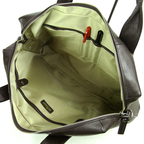 牛革 カワノバッグ ビジネスバッグ 内部前面メイン収納部は天ファスナーで開口します。ダブルファスナ仕様なので、どちらからでも開けやすくスムーズに出し入れができます。
