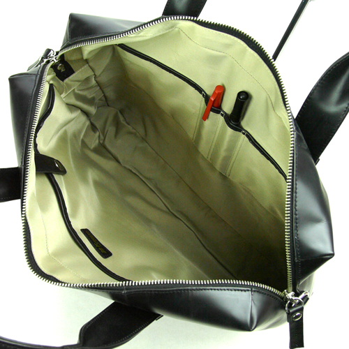 ダブルファスナー仕様で大きく開口。ファイルや書類などの出し入れがスムーズに行えます。A4ファイル対応。