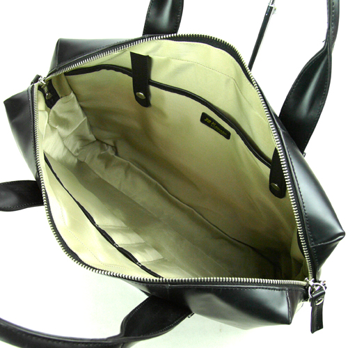 牛革 カワノバッグ ビジネスバッグ 内部前面メイン収納部は天ファスナーで開口します。ダブルファスナ仕様なので、どちらからでも開けやすくスムーズに出し入れができます。