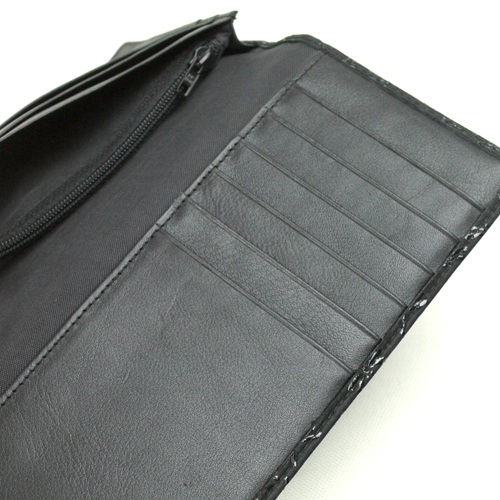 ファスナー式の小銭入れの付いたフタ付き薄型タイプの長財布です。