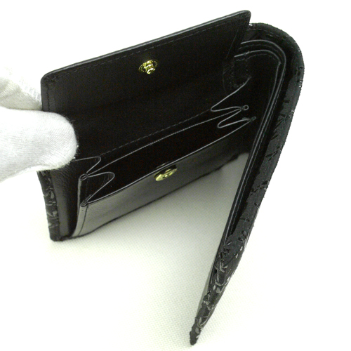 印伝 二つ折れ札入 小銭入れスナップボタンで開閉します。中仕切りの付いた小銭入れになっています。