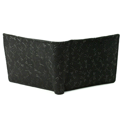 印伝 鹿革 二つ折れ札入 トンボ 黒漆 18-03