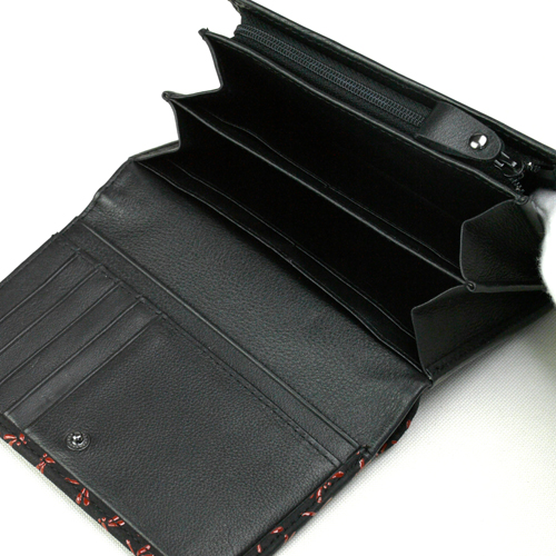 印伝 二つ折れ背段札入 トンボ 赤漆