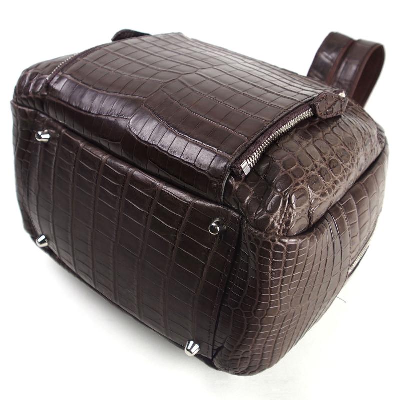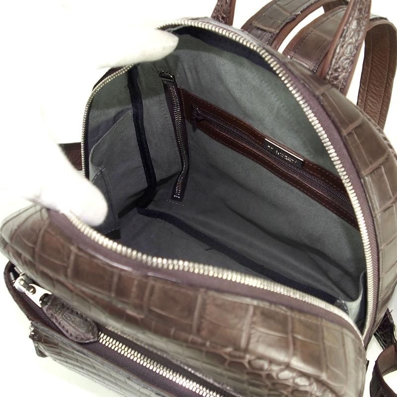 肩ベルトや上部のハンドルにもクロコダイルが縫い付けてあります。外装は総クロコダイルの贅沢なリュックサックです。