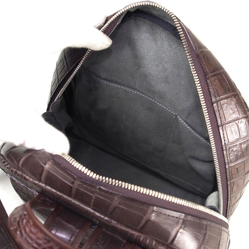 KAWANO本社職人が仕上げた純日本製全面全てに上質のクロコダイルを使用しています。日本国内の仕上げならではのソフトな表情。細部まで丁寧に仕上げた贅沢な造り。どこから見てもクロコダイルの魅力が溢れるリュックサックです。