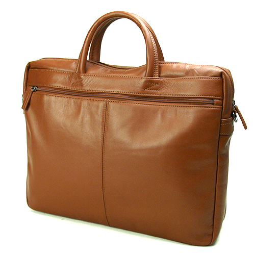 牛革ビジネスバッグ カワノバッグ 外装外側前面と背面には、ファスナーポケットが付いています。