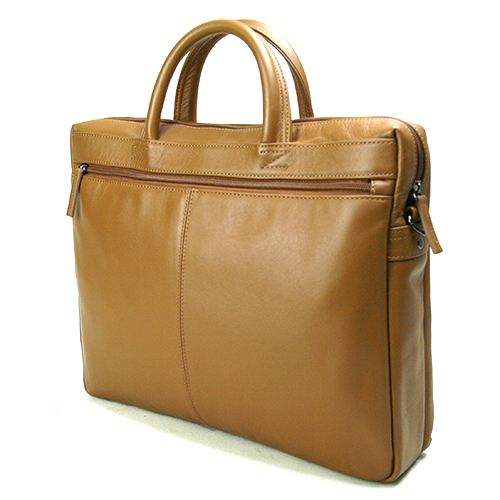 牛革ビジネスバッグ カワノバッグ 外装外側前面と背面には、ファスナーポケットが付いています。