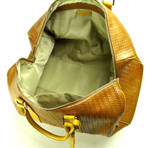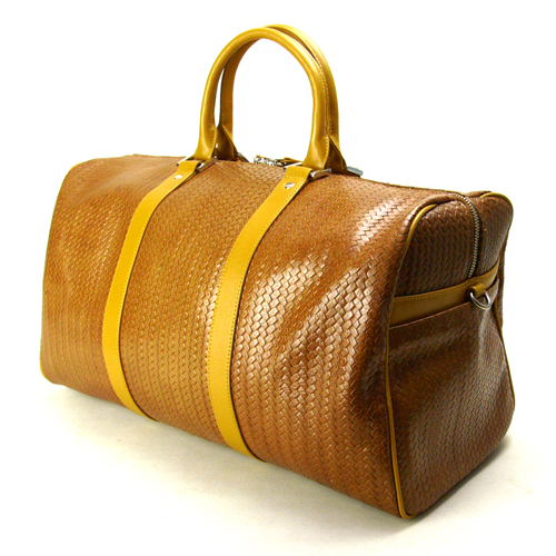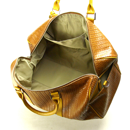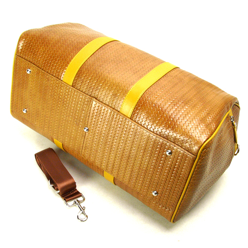 牛革網目型押し カワノバッグ ボストンバッグ Sサイズ(45cm) ブラウン x キャメル
