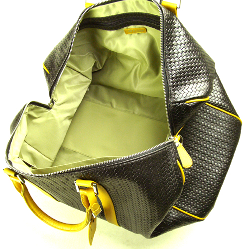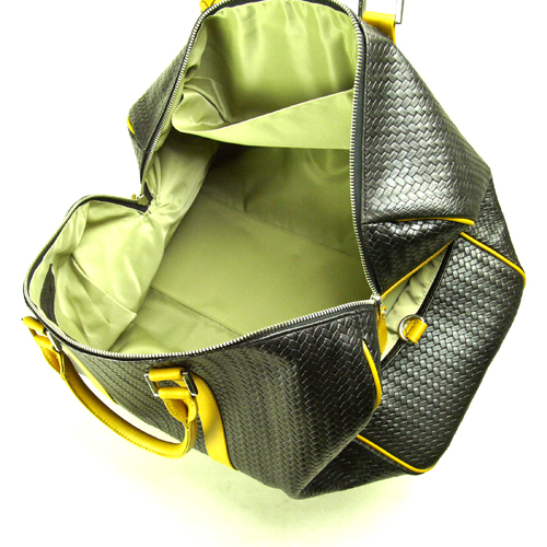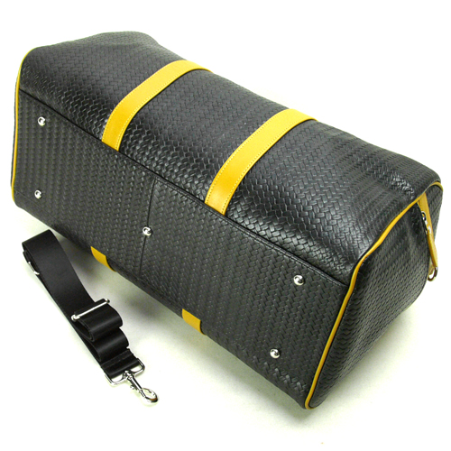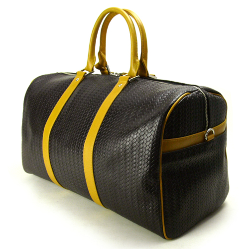 牛革網目型押し カワノバッグ ボストンバッグ Sサイズ(45cm) ブラック x キャメル