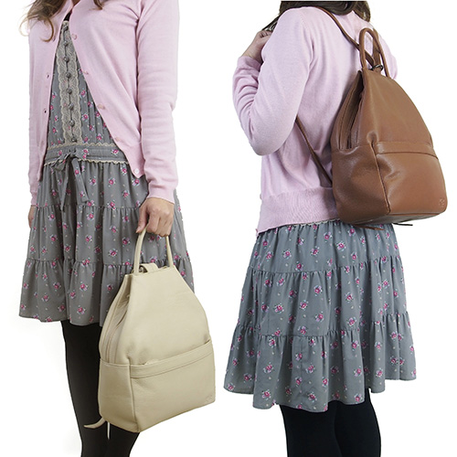 リュックサックとしてだけでなく、ハンドバッグとしても使用でき実用性抜群。