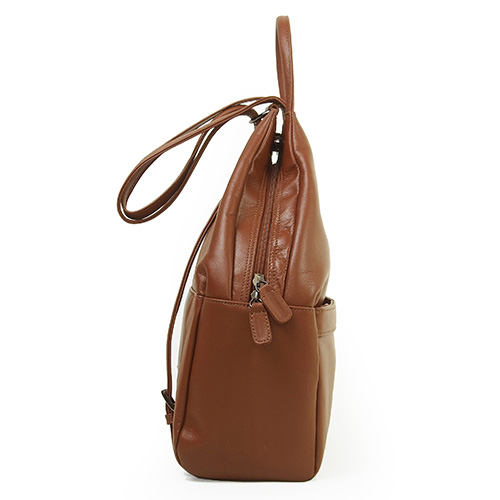 牛革 レディースバッグ 2Wayバッグ 側面細部までしっかりと造られています。ハンドバッグとして使用する際はひもを上部リングにくぐらせてコンパクトにしておく事ができます。