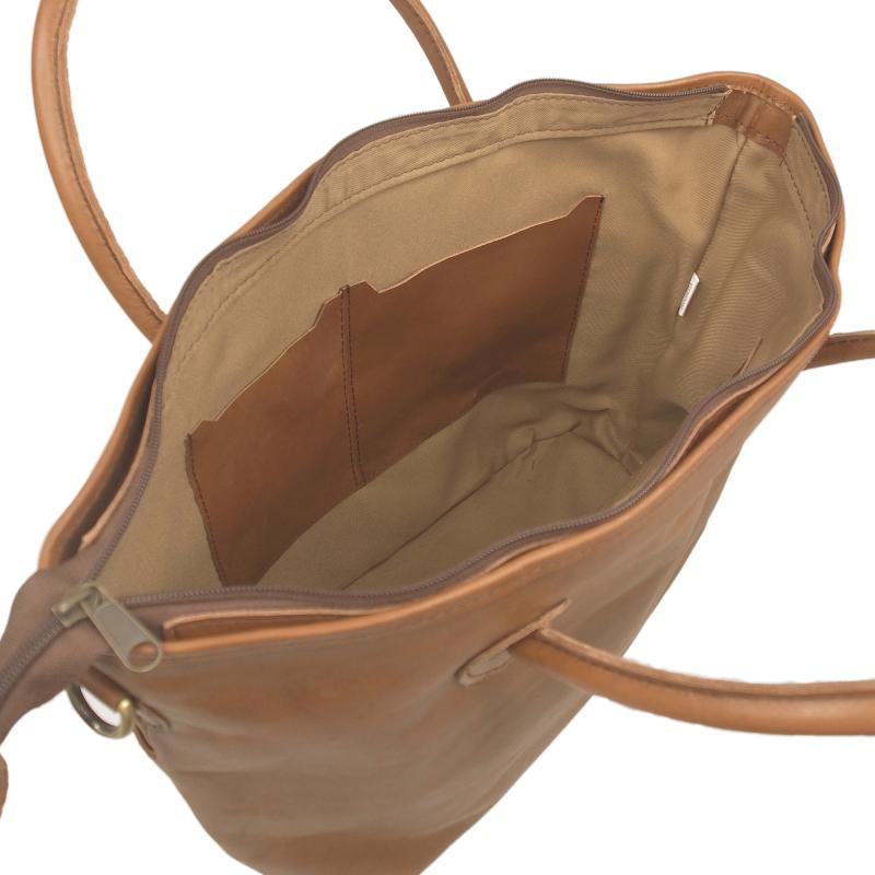 内部背面はファスナーポケット背面も一枚革です。大きな面を必要とする大型バッグですが、前面・背面とも妥協をせずにベジタブルタンニンの一枚革を使用しています。