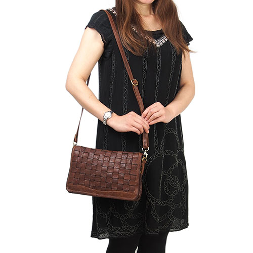 しなやかな革の風合いと質感を活かしたメッシュ編みが魅力的。程よい大きさでセカンドバッグとしてもお使いいただけるショルダーバッグです。