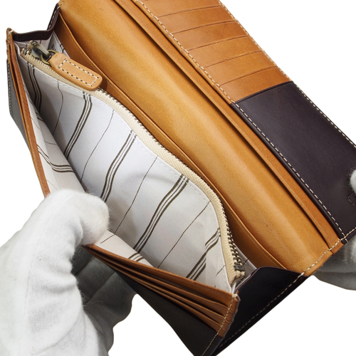 充実のカードポケット・ファスナー小銭入れ ツートンカラーのおしゃれなデザイン ストライプ柄の内装