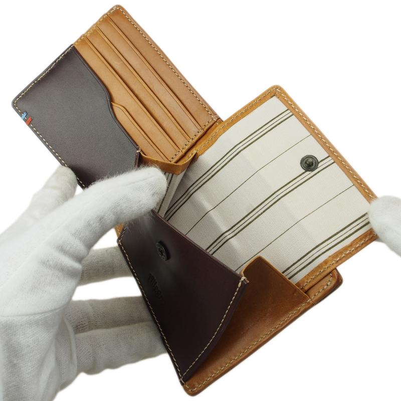 ツートンカラーのおしゃれなデザイン 小銭入れ付き ストライプ柄の内装・隠れポケット イタリアンレザーを贅沢に一枚革で使用