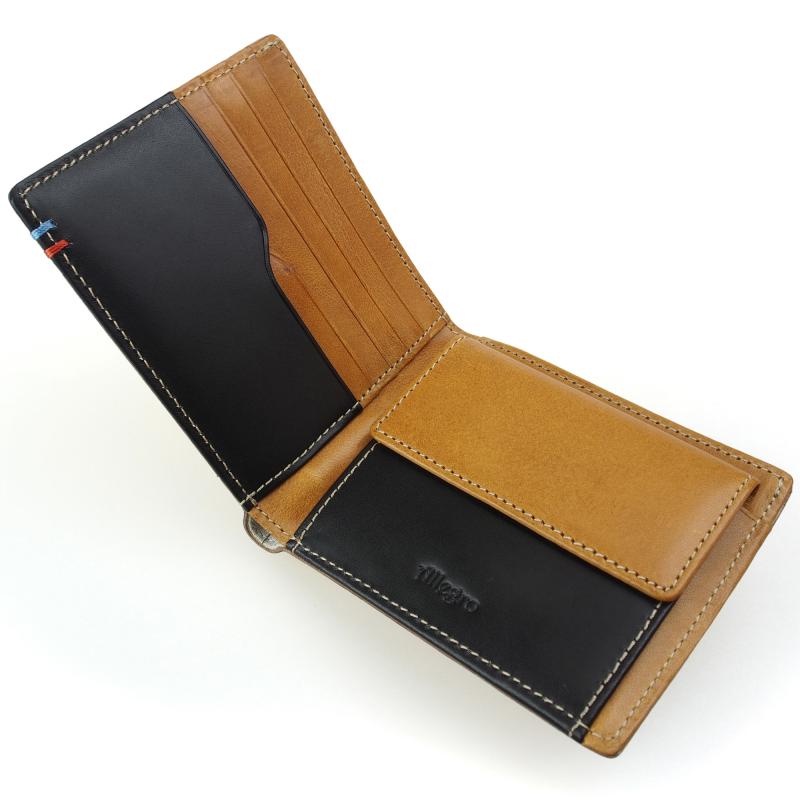 Allegro(アレグロ) ロッソ 二つ折り財布 牛革(イタリアンレザー) 小銭入れ付き No.05604-B(ブラック)