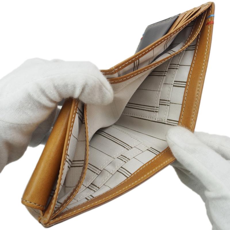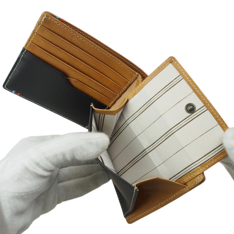 ツートンカラーのおしゃれなデザイン 小銭入れ付き ストライプ柄の内装・隠れポケット イタリアンレザーを贅沢に一枚革で使用
