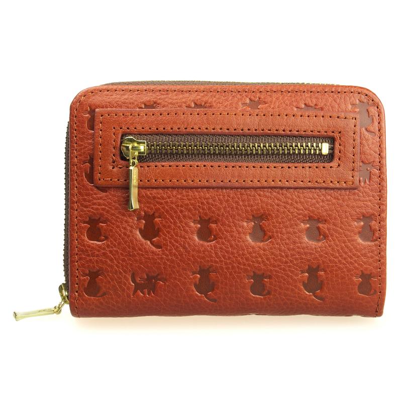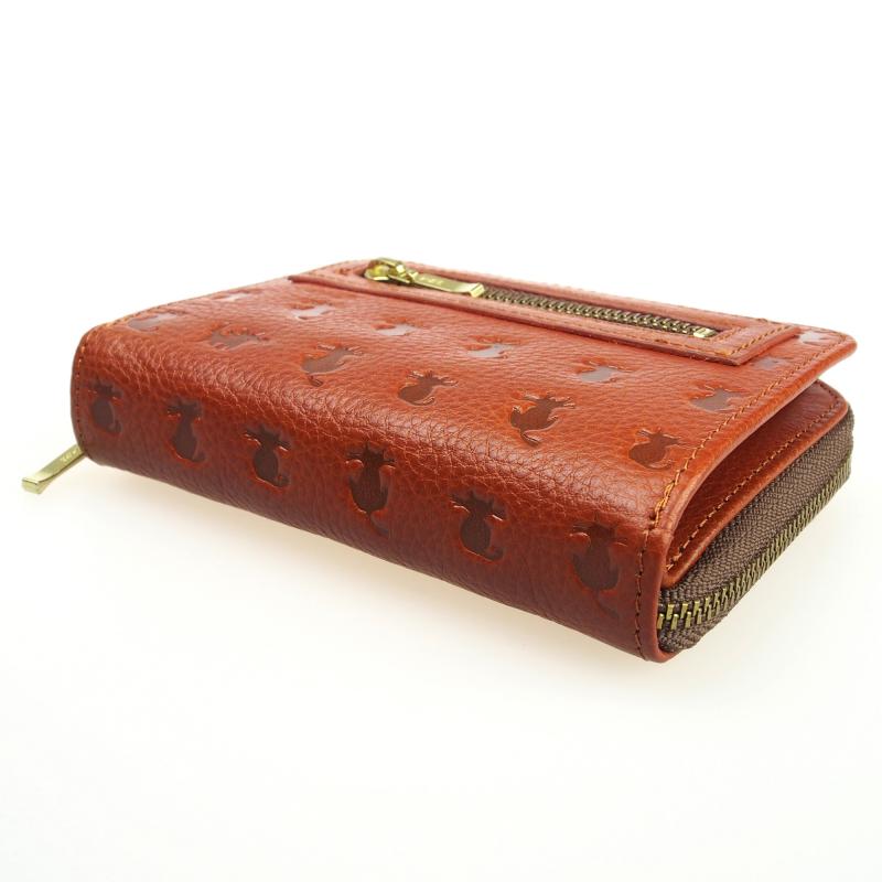 二つ折り財布 牛革 猫柄型押し ラウンドファスナー小銭入れ付き michel Jurdain(ミッシェルジョルダン) CA-7 チャ