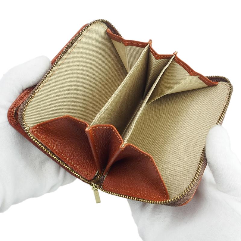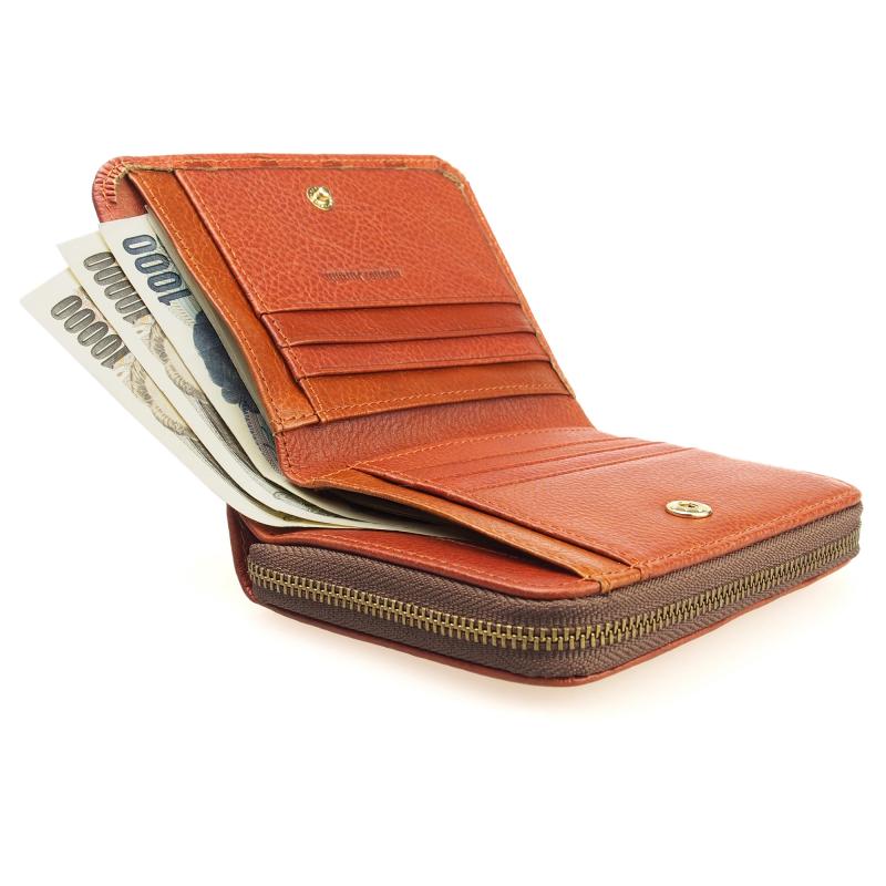大きく開く小銭入れラウンドファスナー型の小銭入れ部分は、アコーディオンマチなので大きく開きます。小銭がたくさん入っていても、中がよく見えるので便利です。ファスナーは世界中で信用されているYKK製です。