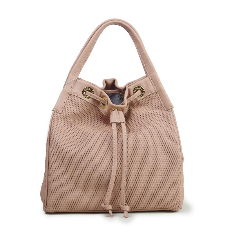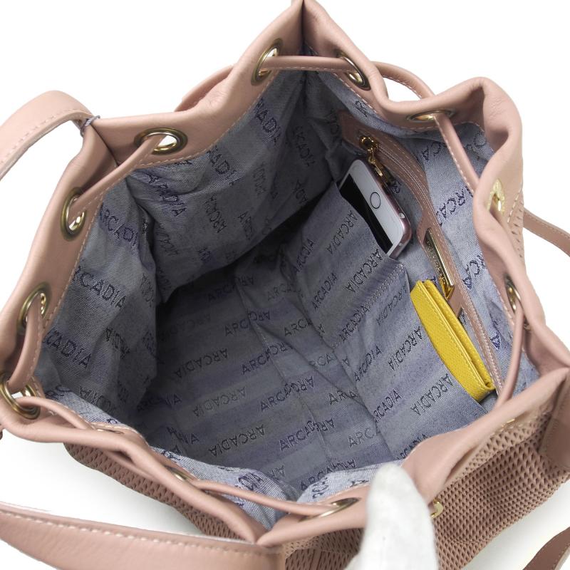 レディースバッグ | イタリア製 牛革 2WAY 巾着絞り スクエア型 ショルダー付ハンドバッグ ARCADIA(アルカディア) Art.2784 CONFETTO(ピンクベージュ)