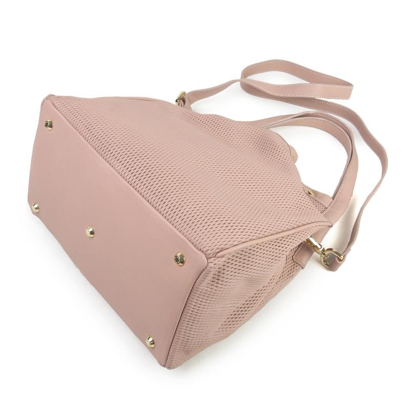 巾着絞りが可愛らしく、スクエアシルエットが魅力的。牛革に珍しいメッシュ加工を施した、しなやかかつ軽やかな2wayハンドバッグです。取り外し可能のショルダーベルトを付ければ、ショルダーバッグとしてお使い頂くこともできます。