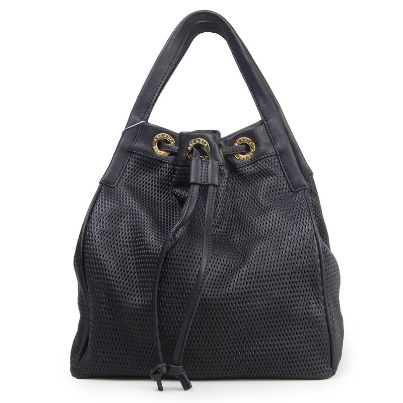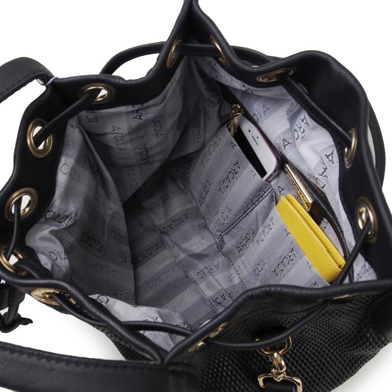 レディースバッグ | イタリア製 牛革 2WAY 巾着絞り スクエア型 ショルダー付ハンドバッグ ARCADIA(アルカディア) Art.2784 NERO(ブラック)