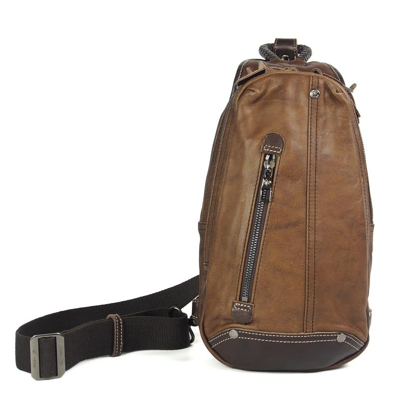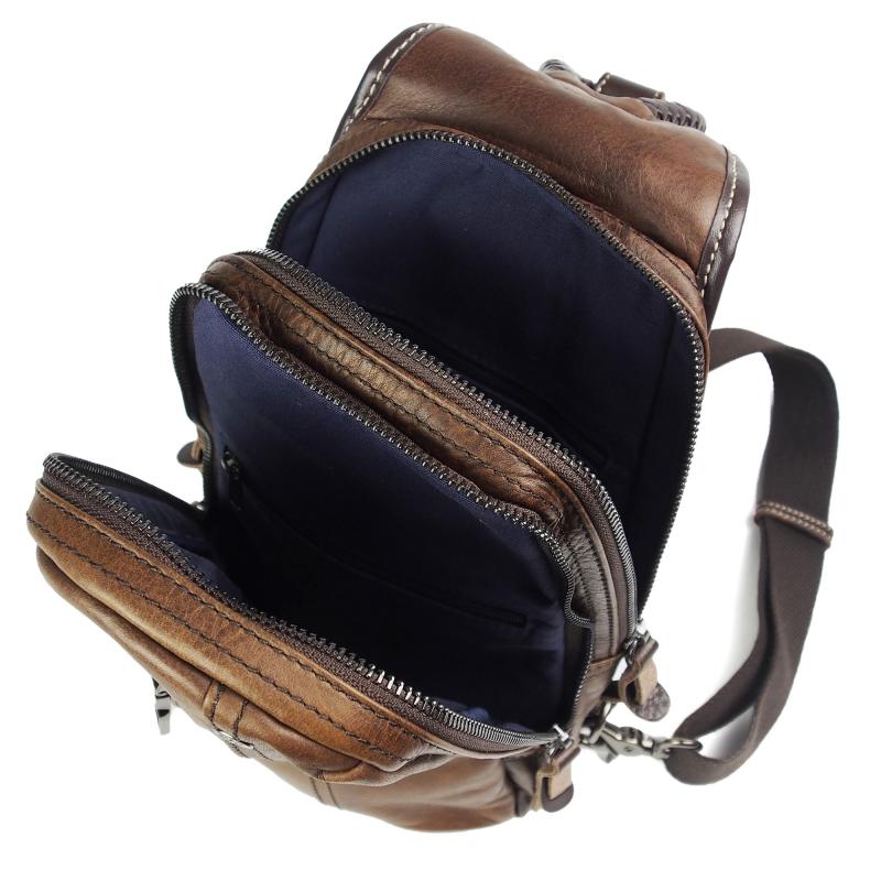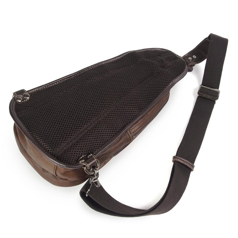 メンズバッグ ボディバッグ ワンショルダー ダブルファスナー Allegro(アレグロ) ユッティーナ No.58833-A 牛革(イタリアンレザー) ブラウン
