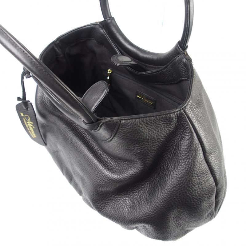 牛革 レディース ハンドバッグ カワノバッグ シュリンクレザー ブラック No.09098