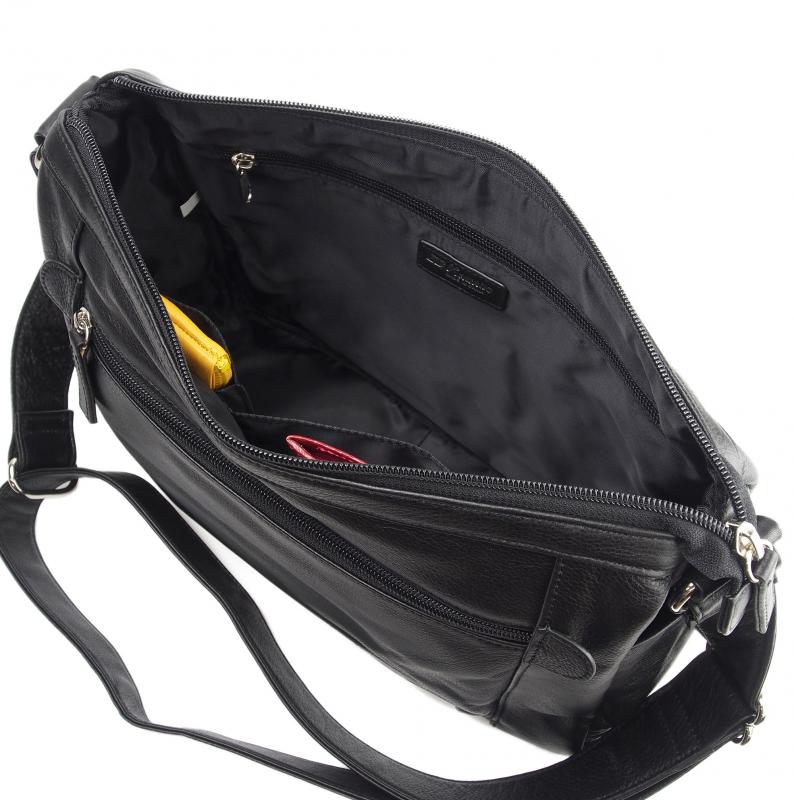 B5サイズのノートがすっぽりと入るくらい大きいので、お出かけに必要なものがたくさん収納出来ます。マチがあり、前面に大きなファスナーポケットもあって、見た目よりもずっと物が入るので使い勝手は抜群です。また、ショルダーは長時間持っていても肩が痛くならないように、しっとりとした幅の広い本革を使用しているので疲れにくいです。横長の形はショルダーを開けて物を見つけやすく、底もしっかりとしているので中身をたくさん入れても安定感があります。