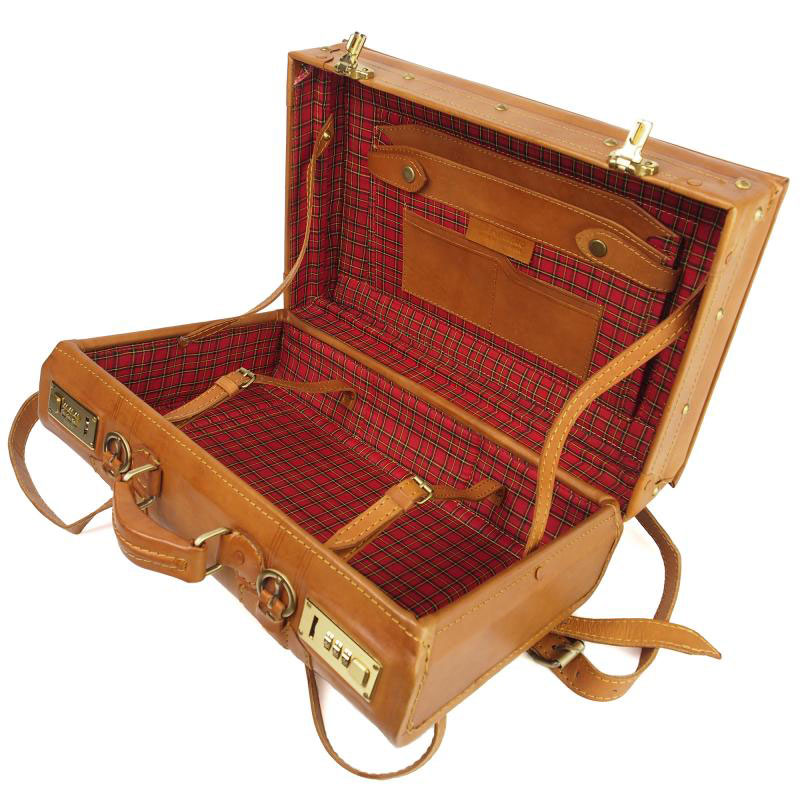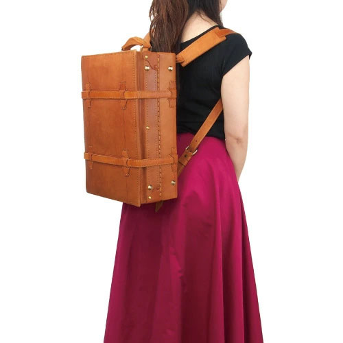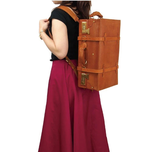 トランクケースには珍しく背負ってリュックにもなるショルダーベルトも付属しており、手持ちにもリュック型にもなる仕様で両方使えて便利な造り。使いやすく手造りの良さを感じながら、長く愛用して頂ける逸品です。
