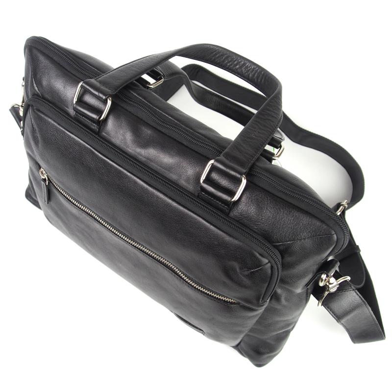 本革を使いデザイン性と機能性を持たせたビジネスバッグ。前面にはファスナー式ポケットを装備。また最前面には小物入れファスナーポケットがあります。背面には大きめのファスナーポケットがあります。また、ショルダーベルトの裏面はメッシュ加工で丈夫です。長時間持っていても肩が痛くならないように、しっかりとした幅の広い本革を使用しているので疲れにくいです。デザイン性はもちろん使い勝手抜群のショルダーバッグです。