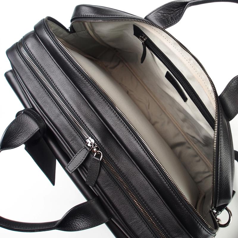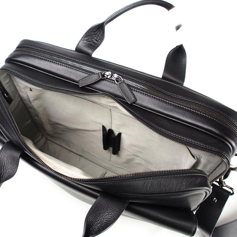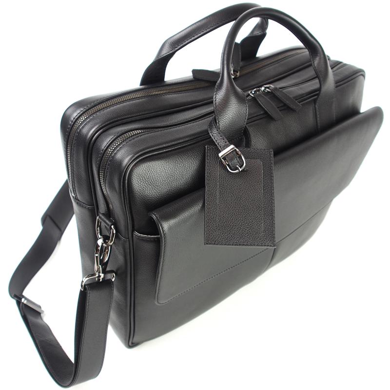 しっかりとした形状で前面には大きめのかぶせ付きポケットを2つ装備。メイン収納部は前後2つあり、それぞれの内部には大きめのファスナーポケットやフリーポケットがあります。短期出張などでは一方にはシャツ類もう一方には書類など入れお使いいただけます。また、ショルダーベルトは革仕様で高級感もあり、丈夫かつ長時間持っていても疲れにくく肩が痛くならないように、幅もあり肩当ても付いています。ちょっとした出張などに使い勝手抜群のショルダーバッグです。