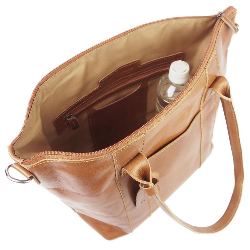 底部まで本革底部も本革で造られているので、丈夫で重い荷物も持ち運べます。マチも十分にあり、かさばる荷物もたくさん入れられて、一泊旅行くらいなら余裕で持ち歩けます。また、ステッチが入っているのでアクセントになって、シンプルながらお洒落なバッグです。