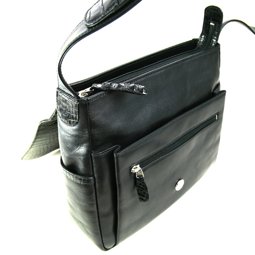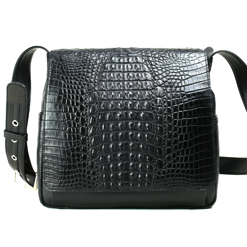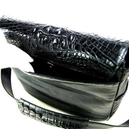 大迫力のクロコダイルのかぶせを贅沢に使用したショルダーバッグです。