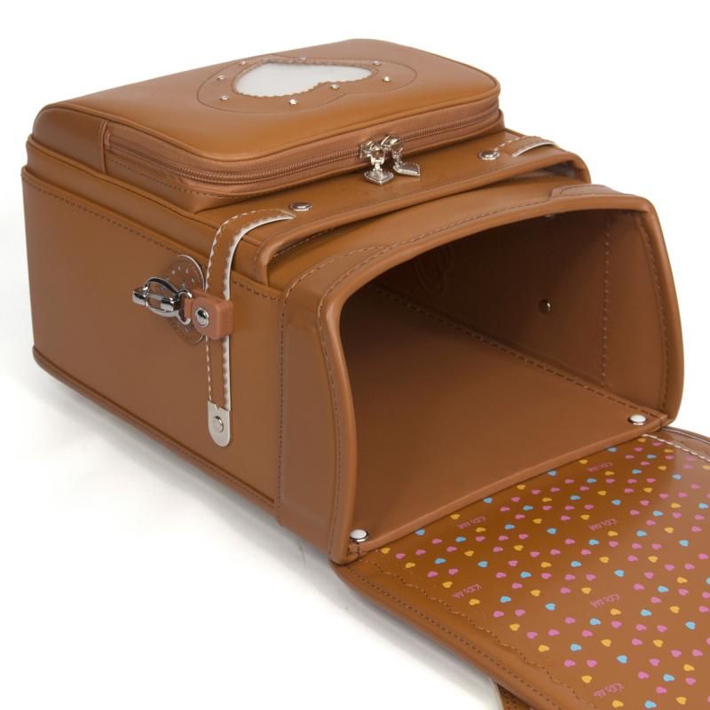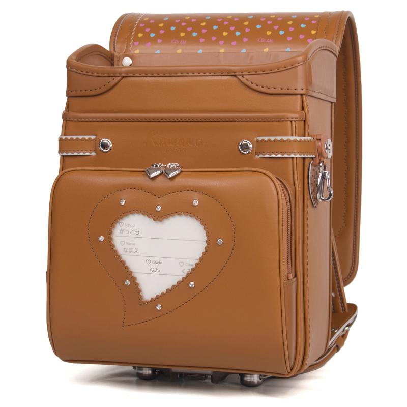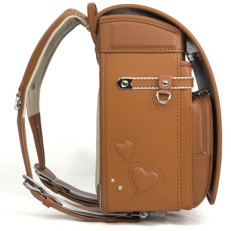 衛生面に優れた本革を贅沢に使用した、カワノバッグオリジナル総牛革ランドセル。ランドセル側面には、さり気なくハートの刺繍とスワロフスキーが輝いています。カブセは牛革ボルサだから、水とキズに強く抜群の耐久性。安全性と健康面にも配慮されています。また、A4フラットファイル対応サイズだから、配布プリントもまとめて収納できる実用性も魅力です。