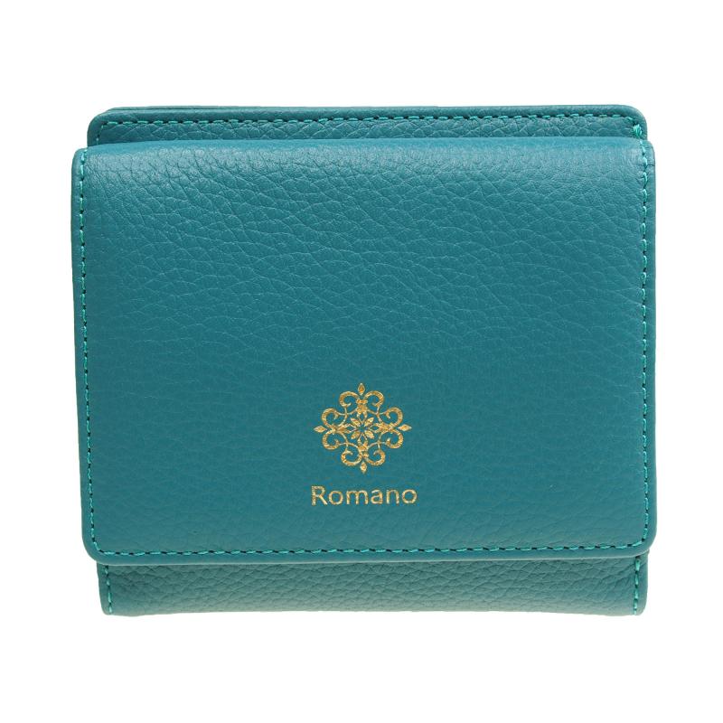 二つ折り財布 牛革 本革 BOX型 小銭入れ付き 札入れ ミニ財布 ショートウォレット 軽量 ROMANO(ロマノ) 5302 ブルー