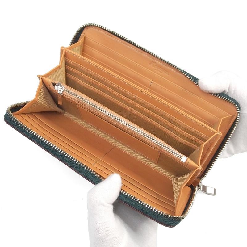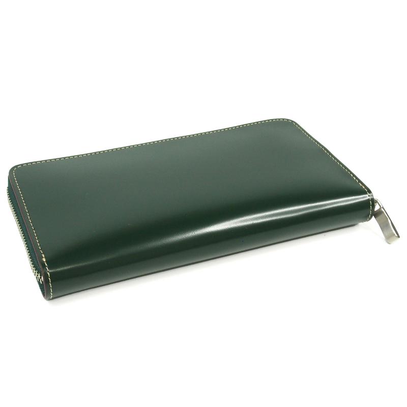 ラウンドファスナー長財布 | コードバン CORDOVAN 大容量 カード収納26 本革 一枚革 KW-117 GREEN グリーン