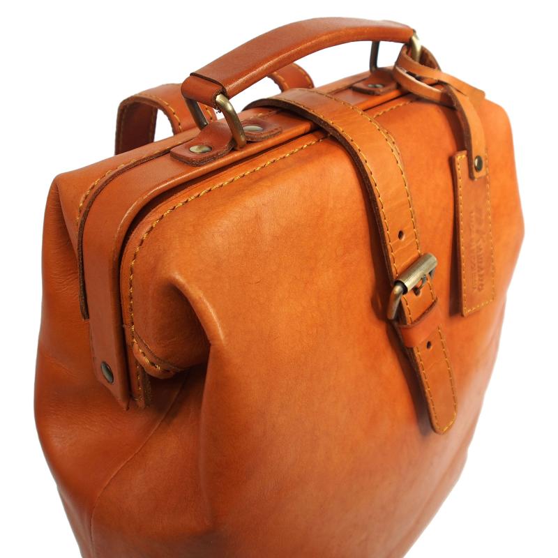 牛革 ヌメ革 リュックサック ドクターズバッグ型 A4対応 軽量 ビジネスバッグ がま口バッグ ハンドメイド 大容量 口枠 レディース メンズ ベジタブルタンニンなめし No.03124 camel キャメル