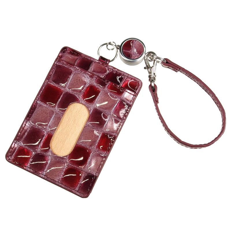★必ずもらえるキ-カバ-★【メール便送料無料】 パスケース リール付き メンズ レディース カードホルダー 定期入れ 本革 牛革 エナメル加工 クロコダイル調型押し ステンドグラス調 カワノバッグ STE-01