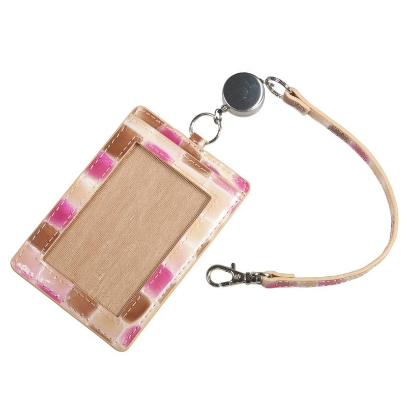 引っ張ると最大で40cmほど伸びるリールが装備されています。鞄にパスケースを取り付けているときに、鞄から外さなくてもリールを伸ばせば改札タッチが可能です。ICカードを探す時間が省かれ、スマートに行動することができます。電車に乗り遅れそうなときにも大活躍です。リールホルダーの表側にはお揃いの共革があしらわれています。